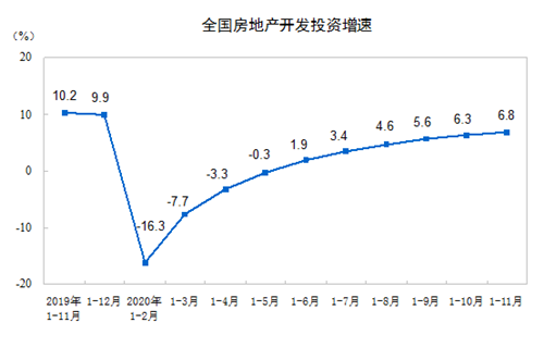 自2020年2月起,全國房地產開發到位資金同比增速穩步提升。國家統計局數據顯示,2020年1~11月,房地產開發企業到位資金171099億元,同比增長6.6%,增速比1~10月提高1.1個百分點,其中由于受上半年流動性充裕等因素影響,6月單月房企到位資金超兩萬億元。