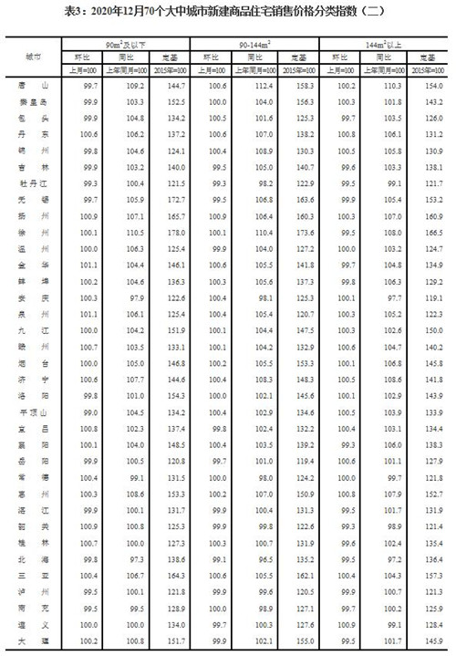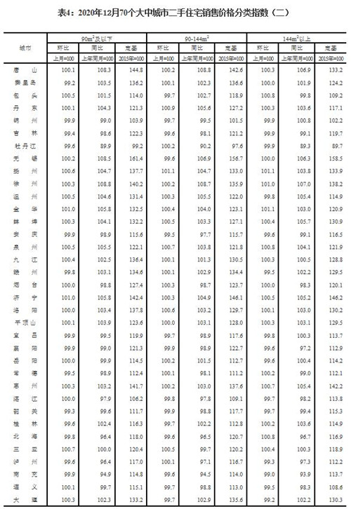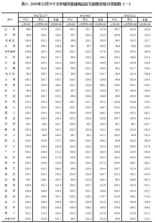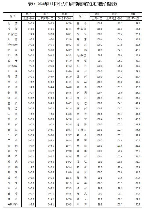 房訊網訊 國家統計局15日發布2020年12月份70個大中城市商品住宅銷售價格變動情況,數據顯示,70個大中城市房地產市場價格穩中略漲。