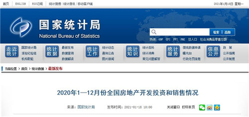 房訊網訊 1月18日,國家統計局發布2020年1—12月份全國房地產開發投資和銷售情況,2020年全國商品房銷售面積176086萬平方米,比上年增長2.6%;商品房銷售額173613億元,增長8.7%。