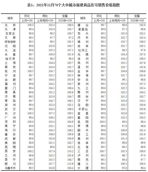 房訊網訊 12月15日,國家統計局發布2021年11月份商品住宅銷售價格變動情況,國家統計局城市司首席統計師繩國慶解讀表示,11月份商品住宅銷售價格環比總體下降,同比漲幅回落。
