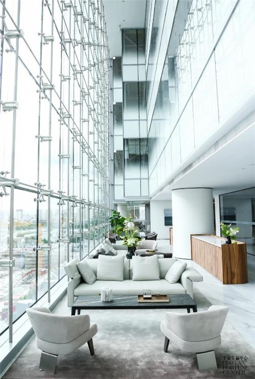平安幸福中心以"匠心"和細節鑄就樓宇高端品質。挑高17米的云端中庭,打造私享企業門面;6000平方米總部獨棟,實現企業高端商務定制;共享藝術大堂直面中庭花園,營造空間與自然共融的和諧氛圍;四管式中央空調加新風系統,構建舒適鮮氧辦公環境;人臉識別閘機和智能選層電梯系統,盡顯科技融合的商務魅力。