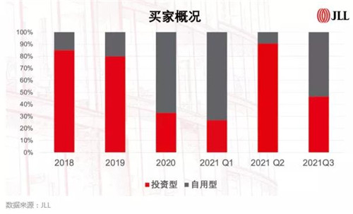 從物業類型分析,2021年第三季度辦公樓成交占總成交額的57.6%,環比上漲14.2%。仲量聯行認為,一線城市強勁的辦公租賃需求讓投資者對于這一資產類別保有較強信心。