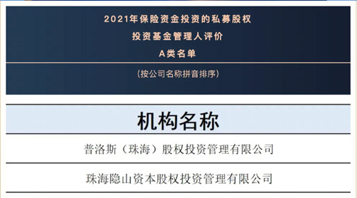 近日,中國保險資產管理業協會公布了2021年保險資金投資的私募股權投資基金管理人評價結果,普洛斯(珠海)股權投資管理有限公司、珠海隱山資本股權投資管理有限公司分別代表普洛斯及旗下隱山資本獲評A類基金管理人。其中,普洛斯(珠海)股權投資管理有限公司已連續兩年獲評,A類是該評價結果中的最高級別,代表了對普洛斯在基金及資產運營管理各方面綜合能力的持續認可。