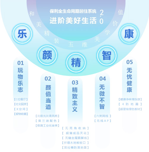 2021年,保利發展控股延續“無Well不至”的產品理念,推出以“樂、顏、精、智、康”為核心價值的5維美學價值新產品——和美精裝、和趣景觀兩大體系,攜手客戶進階美好生活。