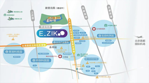 E_ZIKOO智慧谷立足北京自貿區科創片區核心規劃區--中關村科學城北區腹地,位于北清路前沿科創發軸與中關村大街高端創新集聚發展軸交叉的黃金十字線上;沿線串聯了2000多家科創企業,鏈接著中關村科學城和未來科學城,項目周邊聚集環保科技園、生命科學園、翠湖科技園、中關村軟件園、航天城等高新產業組團;目前已有華為、百度、北斗星通、大唐電信等多家高新科技企業以及數以萬計的科創精英云集,涵蓋了信息技術、信息服務、醫藥環保、節能、金融、智能制造、產業互聯網等多個高精尖產業及行業人才。