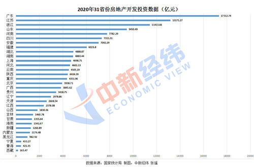 中新經緯客戶端1月22日報道,日前,國家統計局公布了31省份2020年房地產開發投資數據。看看你的家鄉排第幾?