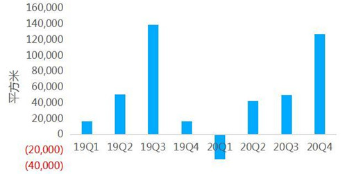 北京代表性甲級寫字樓市場空置率自2019年一季度開始就持續上升,2020年四季度末達到18.5%的高位。據分析,除了疫情沖擊帶來的暫時性影響,甲級寫字樓市場的新增供應持續放量是其空置率高企的最主要原因。