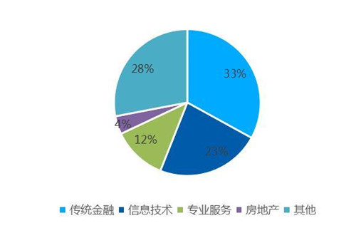 從甲級寫字樓的租賃行業結構看,傳統金融、信息技術和專業服務依然占據甲級寫字樓市場新租面積排名的前三位。