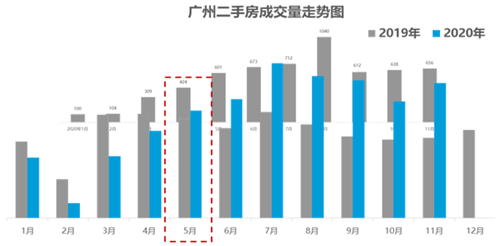 同新房市場(chǎng)相似,從2020年3月開始,廣州二手住宅成交量亦呈現(xiàn)逐漸恢復(fù)趨勢(shì),截至5月已實(shí)現(xiàn)單月同比轉(zhuǎn)正,略早于新房市場(chǎng)。但在三季度隨新房市場(chǎng)供應(yīng)增加,客戶被分流等因素影響,成交量呈現(xiàn)持續(xù)回落,并在10月觸底。“金九銀十”后受新房市場(chǎng)影響減弱,客戶逐漸回流,呈現(xiàn)一定年末翹尾現(xiàn)象。