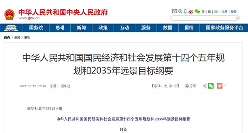 3月13日,《中華人民共和國國民經濟和社會發展第十四個五年規劃和2035年遠景目標綱要》(全文)正式發布。《規劃和綱要》提出,完善住房市場體系和住房保障體系。