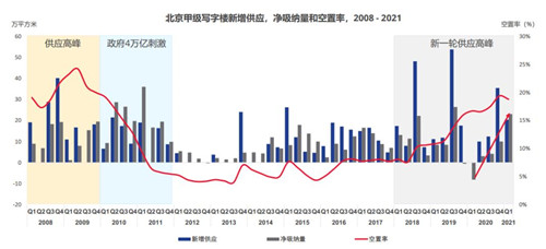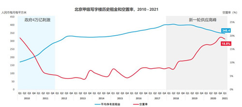 高力國際分析認為,大幅的季度新增需求反彈或將不可持續,季度新增需求后續將會逐步回歸到疫情前的水平。我們依然維持市場處于三期疊加的判斷,依然維持宏觀經濟增長穩步復蘇,北京疫情防控有效和寫字樓需求中性釋放的三個基礎宏觀條件,并預計空置率在2021年觸頂和租金探底的基本研判。
