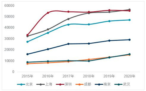 本次報告首次提出解決大城市新市民和青年人的住房問題,保障性住房和共有產權住房會成為大城市的重點發展方向。長久以來,一線城市高居不下的住宅價格嚴重影響了居民的消費和創業創新能力,高額的住宅價格讓新市民和青年人的生活品質也得不到保證,生活的幸福感低。與之相對比的,是近幾年嶄露頭角的二線城市由于住宅價格平抑,消費較低,因此對大學畢業生和青年人才更具吸引力,2020年,成都、武漢的一手房價格不到上海和深圳的30%,南京價格稍高,也僅約為上海深圳房價的50%。解決大城市新市民、青年人的住房問題迫在眉睫。2021年,預計政府會在需求相對集中的區域增加租賃房源的供給,租賃市場的發展將更聚焦于長租房的發展,政府也將對租賃性住房給與相關的財政金融支持政策。