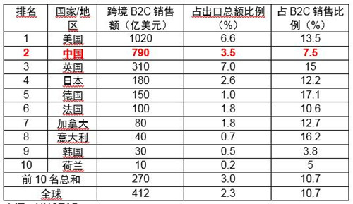表一:全球跨境B2C電商銷售額排名