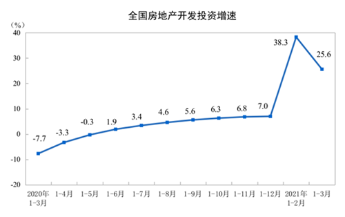 1—3月份,全國房地產開發投資27576億元,同比增長25.6%;比2019年1—3月份增長15.9%,兩年平均增長7.6%。其中,住宅投資20624億元,增長28.8%。
