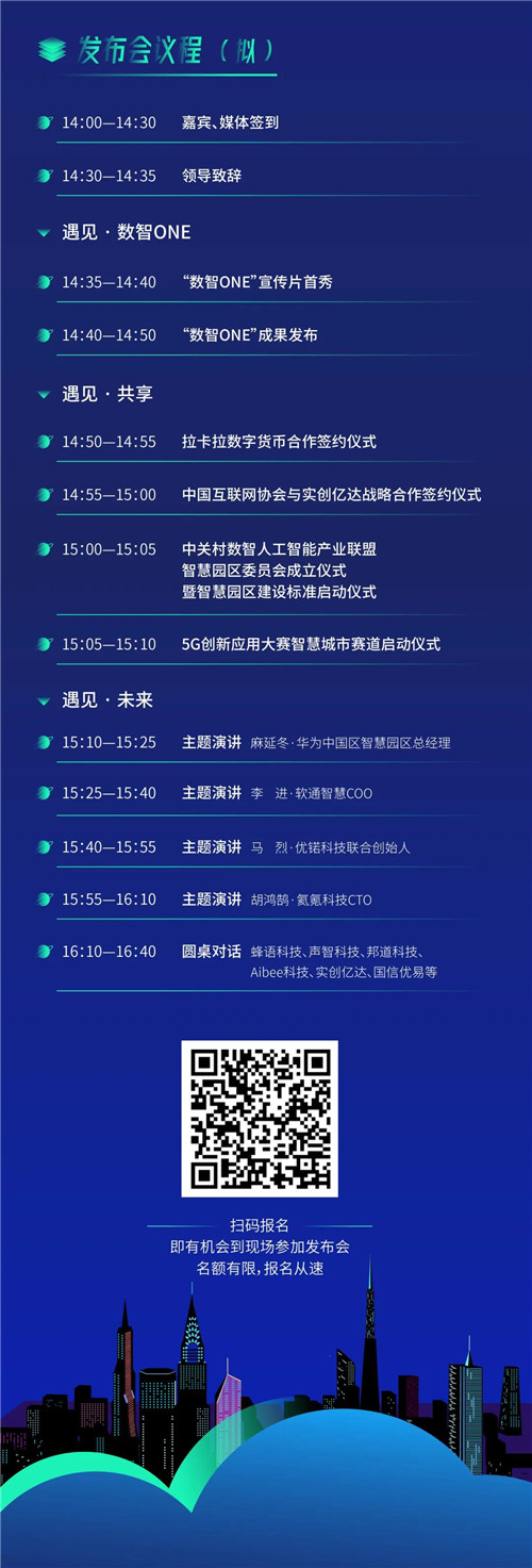 關于這個智慧觸手可及的數智ONE園區,相信我們都一樣充滿著好奇和想去體驗的希冀。就在4月22日13:00-17:00,“遇見未來”“數智ONE”成果發布會暨中關村壹號智慧園區Open Day即將正式啟幕。