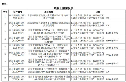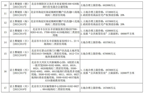 公告顯示,除了房山招標地塊以外,北京市朝陽區金盞鄉小店村3005-02地塊R2二類居住用地等29宗用地國有建設用地使用權出讓掛牌文件中涉及的土地合理上限價格、政府持有商品住宅產權預設份額、競報“公共租賃住房面積”上限面積及競報“國際人才社區住房”上限面積。