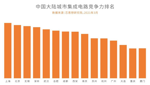 在最新發(fā)布的2021年中國大陸城市集成電路競爭力排行榜中,重慶入選前15強。
