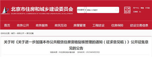 房訊網訊 4月29日,北京市住建委公布《關于進一步加強本市公共租賃住房資格復核管理的通知(征求意見稿)》,面向社會公開征求意見,從進一步簡化家庭復核申報材料、明確定期復核家庭申報期限、優化復核工作程序、加大信息比對核查力度、加強公租房分配管理等方面加強公共租賃住房建設和管理。