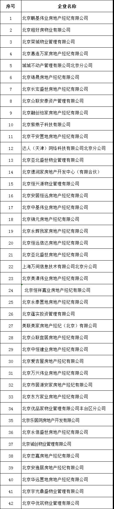 房訊網訊 據安居北京消息,4月7日,北京市、區住建部門結合日常監管和信訪投訴處理情況,梳理出第二批共42家租賃行業重點關注企業名單,提示廣大消費者謹慎選擇。