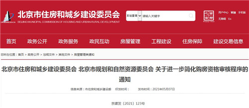 房訊網(wǎng)訊 5月7日,北京市住建委、市規(guī)自委聯(lián)合出臺(tái)《關(guān)于進(jìn)一步簡(jiǎn)化購(gòu)房資格審核程序的通知》,明確自2021年5月1日起,居民家庭購(gòu)房資格通過(guò)聯(lián)網(wǎng)審核的,在申請(qǐng)不動(dòng)產(chǎn)權(quán)登記受理環(huán)節(jié),不再核驗(yàn)居民家庭購(gòu)房資格證明材料,只收取《家庭購(gòu)房申請(qǐng)表》《購(gòu)房承諾書(shū)》原件。若購(gòu)房家庭是通過(guò)互聯(lián)網(wǎng)辦理不動(dòng)產(chǎn)登記的,《家庭購(gòu)房申請(qǐng)表》和《購(gòu)房承諾書(shū)》亦無(wú)需提交。