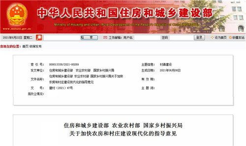 房訊網(wǎng)訊 為深入貫徹落實(shí)黨的十九屆五中全會(huì)精神和“十四五”規(guī)劃綱要關(guān)于實(shí)施鄉(xiāng)村建設(shè)行動(dòng)的部署要求,加快推進(jìn)農(nóng)房和村莊建設(shè)現(xiàn)代化,提高農(nóng)房品質(zhì),提升鄉(xiāng)村建設(shè)水平,近日,住房和城鄉(xiāng)建設(shè)部、農(nóng)業(yè)農(nóng)村部、國家鄉(xiāng)村振興局聯(lián)合印發(fā)《關(guān)于加快農(nóng)房和村莊建設(shè)現(xiàn)代化的指導(dǎo)意見》,從生態(tài)友好、農(nóng)房設(shè)計(jì)建造水平、營造留住“鄉(xiāng)愁”環(huán)境等12個(gè)方面提出了加快農(nóng)房和村莊建設(shè)現(xiàn)代化的具體要求,并指出要因地制宜、分省制定實(shí)施方案、開展試點(diǎn)做好組織實(shí)施工作。