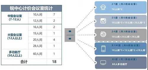 一共18間,小中大型會議室一應俱全,完全能夠覆蓋從初創型公司到大型企業的會議需求;