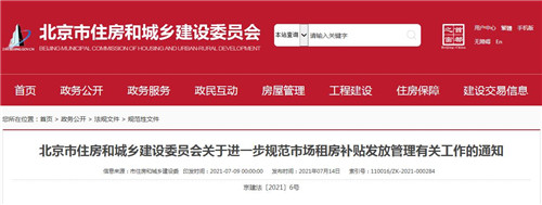 北京市住房和城鄉建設委員會關于進一步規范市場租房補貼發放管理有關工作的通知