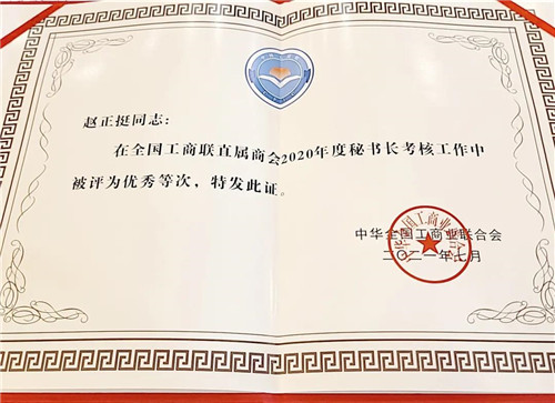 全聯房地產商會秘書長趙正挺榮獲優秀秘書長表彰