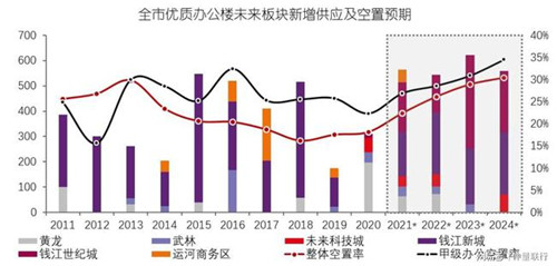 仲量聯行預計,下半年杭州將有5個優質辦公樓項目共計約46萬平方米體量入市,其中三個甲級辦公樓項目包括中國人壽、萬象世界中心及英藍國際金融中心項目,預計帶來30萬方新增體量。年內甲級辦公樓租金預計震蕩上行,而受未來幾年持續高新增供應帶來的市場競爭影響,預計中期年均漲幅將不超過兩個百分點。