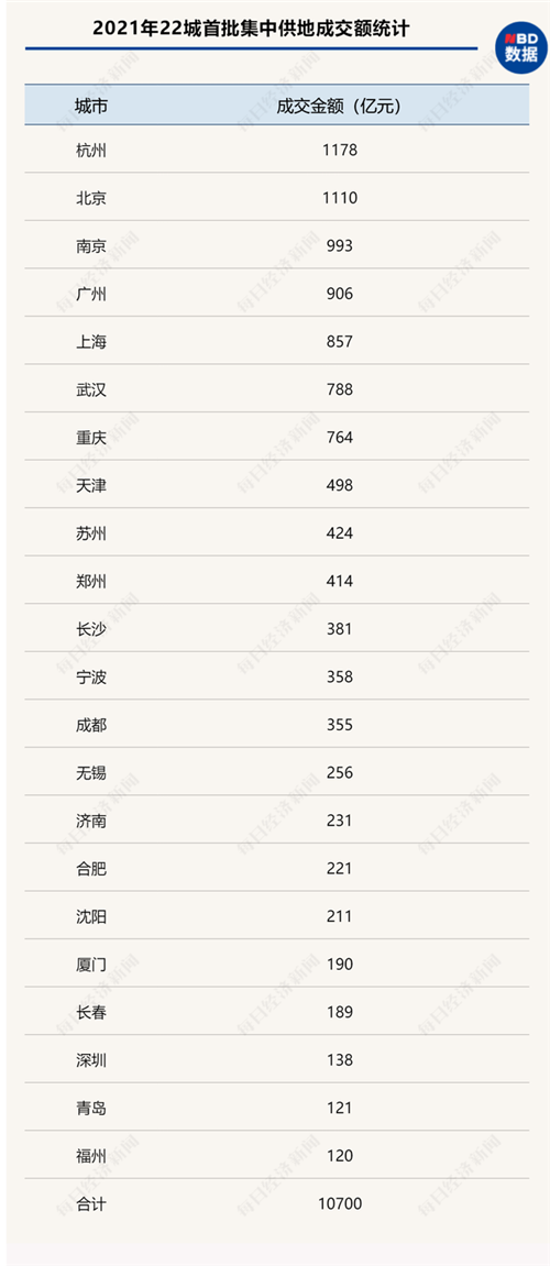 從4月15日長春打響首批集中土拍“第一槍”到武漢集中土拍結束的兩個半月里,22城首批集中供地總計成交住宅用地878宗,成交用地面積約5037公頃,規劃建筑面積1.11億平方米,土地價款總計1.07萬億元,綜合溢價率15.1%。