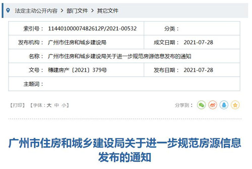 廣州市住房和城鄉建設局關于進一步規范房源信息發布的通知