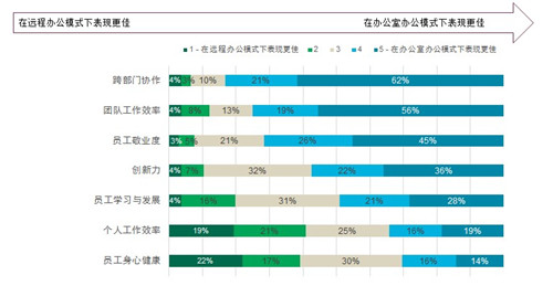 圖表:遠程辦公與辦公室辦公模式下的表現(xiàn)對比
