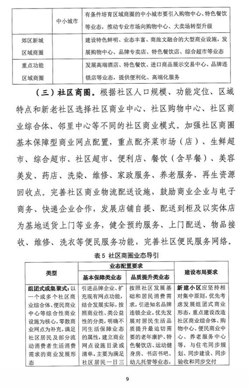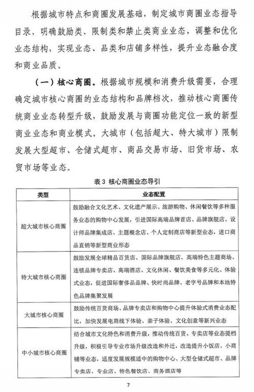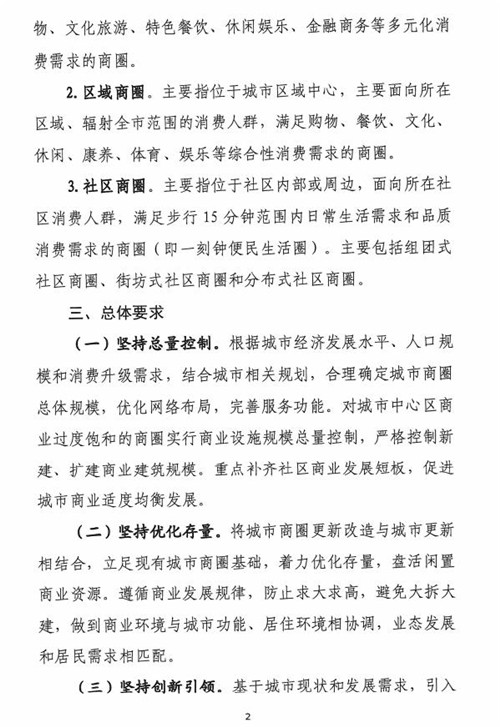《指南》提出堅持總量控制。根據城市經濟發展水平、人口規模和消費升級需求,結合城市相關規劃,合理確定城市商圈總體規模,優化網絡布局,完善服務功能。對城市中心區商業過度飽和的商圈實行商業設施規模總量控制,嚴格控制新建、擴建商業建筑規模。重點補齊社區商業發展短板,促進城市商業適度均衡發展。