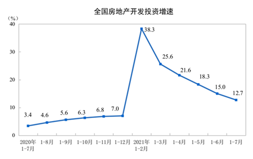 1-7月份,房地產開發企業房屋施工面積891880萬平方米,同比增長9.0%;房屋新開工面積118948萬平方米,下降0.9%;房屋竣工面積41782萬平方米,增長25.7%。