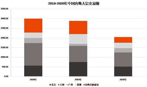 回顧2020年,新冠疫情席卷全球,房地產投資者大多數時間采取觀望態度,中國大宗交易市場也在2020年上半年受到沖擊,但到了2020年第四季度,投資勢頭有所回升。數據顯示,2020年全年中國主要城市大宗交易投資市場錄得約180宗交易,成交額約2000億人民幣,較2019年歷史高點下跌近3成,但仍和2016-2018年年度平均成交量持平,整體表現好于市場預期。