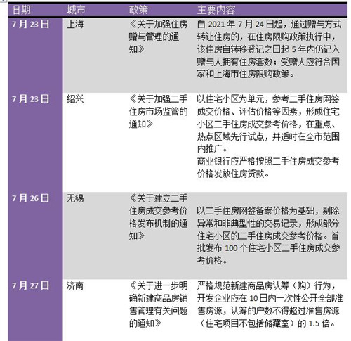 除了二手住房成交參考價制度,今年以來,部分重點城市也出臺了各類調控和監管措施促進二手住房價格的穩定和市場預期的穩定。