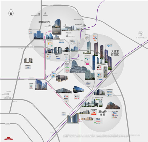 望京本身所具有的鏈接北京各大成熟經濟板塊的紐帶屬性,四通八達的交通網絡、區位優勢和濃厚而獨特的國際商務氛圍三大優勢,使得充足的人才資源與科技資源不斷在此匯聚。一些老牌的國內外巨頭企業如阿里巴巴、美團、58集團、攜程、高德、奔馳、微軟、默沙東、安捷倫等也早都扎根于此,美團、阿里、默沙東等更是花開整個望京。
