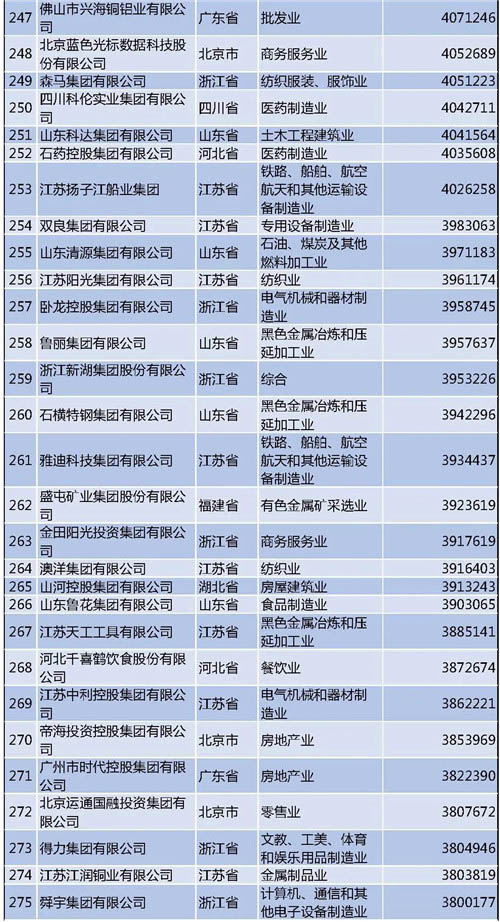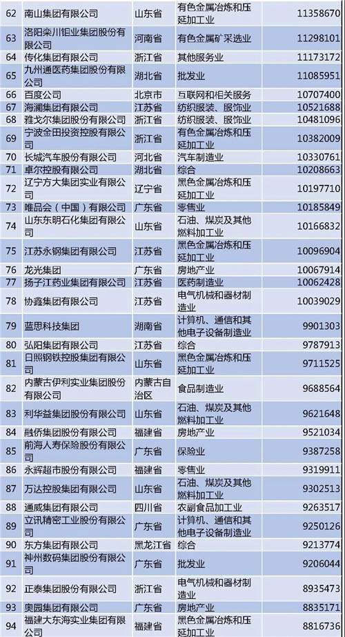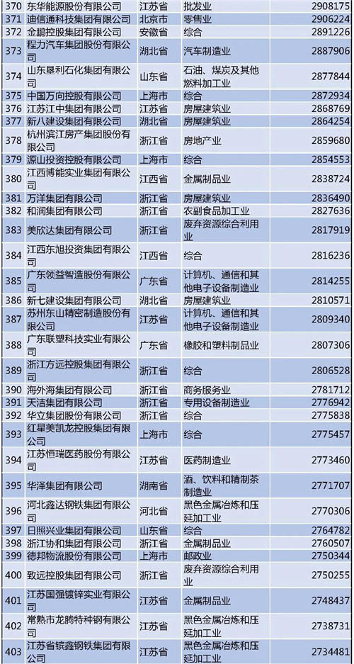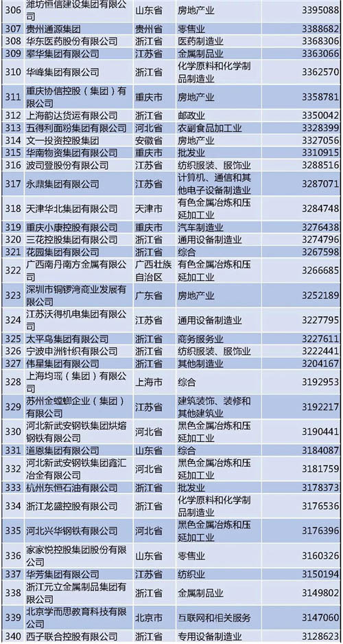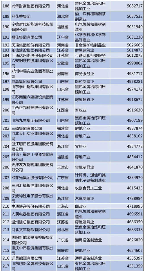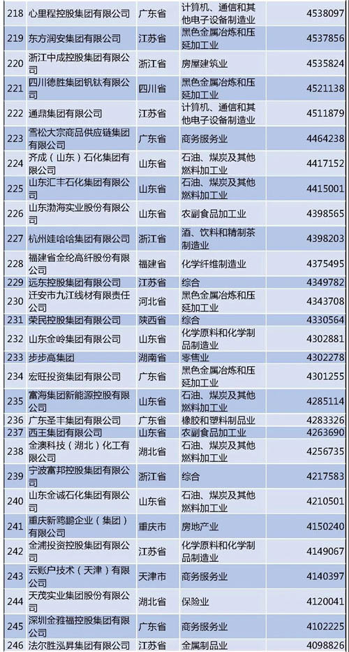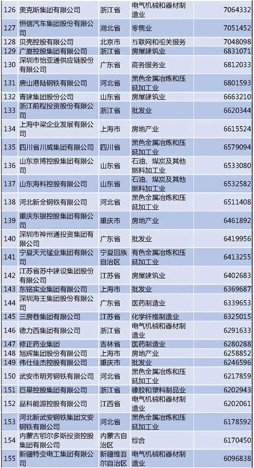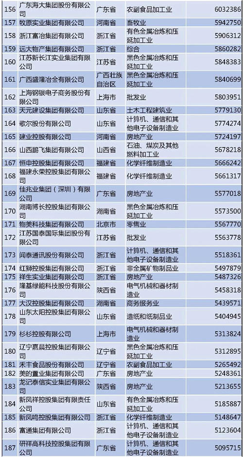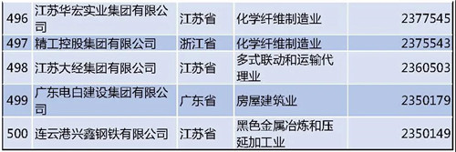 另外需要說明的是,今年的民營企業500強中有57家為新入圍企業,其中有6家企業采用其披露的公開數據。退出榜單的企業主要由于未參加調研、營業收入未達到入圍門檻、不符合入榜條件等。