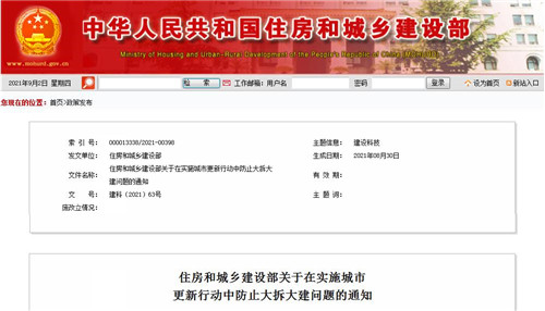 房訊網訊 8月31日,住房與城鄉建設部發布《關于在實施城市更新行動中防止大拆大建問題的通知》,要求在實施城市更新行動中,堅持劃定底線,防止城市更新變形走樣。