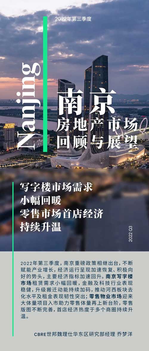 “第三季度南京寫字樓市場租賃需求小幅回暖,金融及科技等主導行業表現穩健,升級搬遷需求得到釋放;營商環境不斷優化,對于新設企業的吸引力穩步提升。未來六個月,南京寫字樓市場約有11.3萬平方米的新增供應,受到大體量項目入市的影響,河西板塊將面臨短期市場去化壓力。整體來看,寫字樓市場將以去化現有存量為主基調,空置率有望穩定下行,而租金調整仍將持續一段時間。”