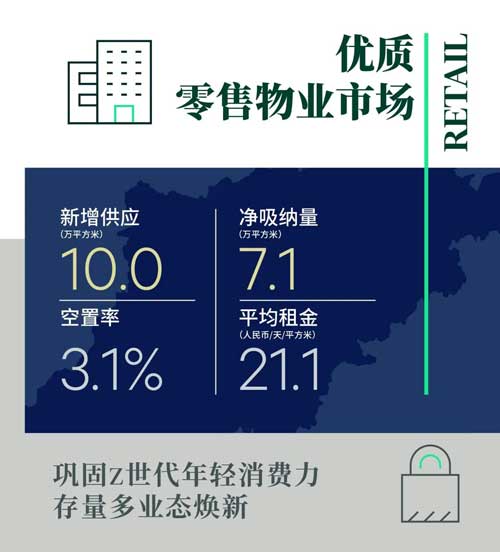 由此,當季人流隨著暑期假期出行,政府消費券發放以及商場會員積分膨脹系數階段性調高等多方面因素帶動實質引流和消費增長,整體零售租金維持平穩走勢,報每天每平方米21.1元。