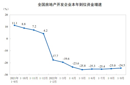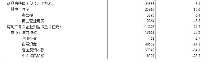 1-9月份,房地產(chǎn)開發(fā)企業(yè)到位資金114298億元,同比下降24.5%。其中,國內(nèi)貸款13661億元,下降27.2%;利用外資61億元,增長2.7%;自籌資金40568億元,下降14.1%;定金及預(yù)收款37348億元,下降34.1%;個人按揭貸款18397億元,下降23.7%。