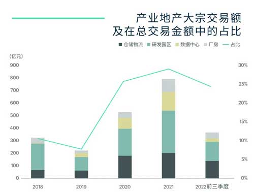 從目前國內產業地產投資的結構來看,研發園區和物流倉儲是最主流的物業類型,交易金額占比超過75%。而廠房因資產流動性、市場信息透明度等原因受到機構投資者的關注相較低,大宗交易以自用購買或改建為其他用途為主。