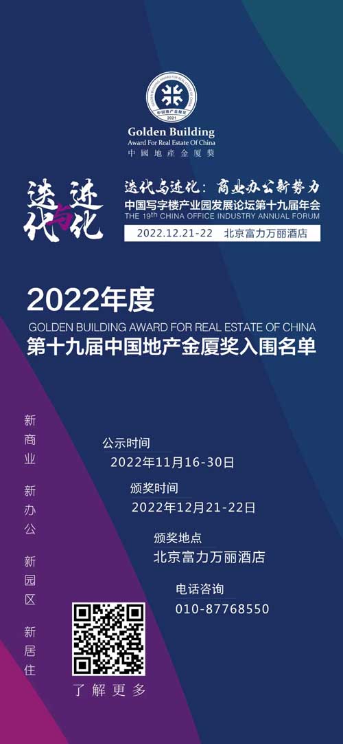 2022第十九屆“GOLDEN BUILDING AWARD FOR REAL ESTATE OF CHINA中國地產金廈獎”評選活動啟動以來,經過近一個月的征集報名、篩選審查、初步評審,活動組委會從1100個商業辦公行業申報項目(企業)中選出121個入圍項目(企業),從11月16日開始進行為期十五天的展示公示,11月30日截止。