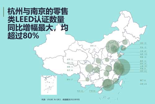 截至9月底,2022年度新增LEED項目注冊中57.3%為零售品牌。品牌不斷加速經營空間的綠化,一是體現在將LEED認證的范圍從原先的新門店拓展到既有門店及工廠、物流中心等價值鏈上的經營空間,如歐萊雅為其蘇州尚美工廠三期擴建項目、宜昌工廠、總部及創新中心等都獲得了LEED認證。同時,品牌也逐漸開始建筑凈零的實踐。可持續時尚品牌Rothy's其在工廠獲得LEED既有建筑認證的同時,也在進一步參與TRUE零廢棄物認證,通過在生產過程中減少廢棄物的產生,呼應品牌循環經濟的理念。