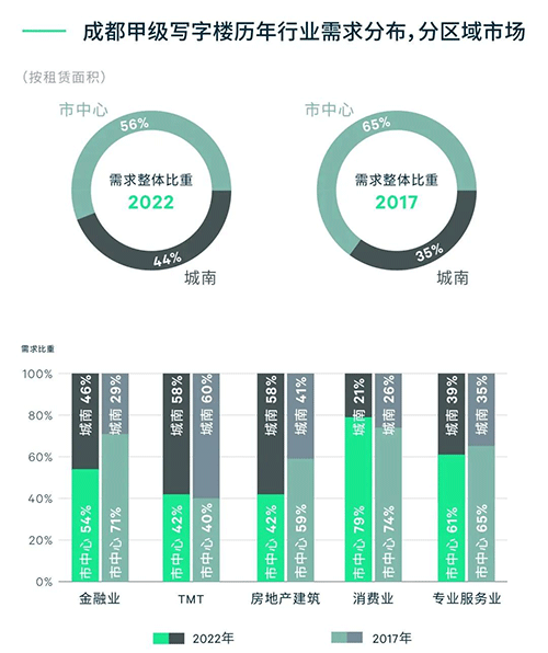 市中心指傳統CBD、東大街、人民南路和城東北寫字樓商務區;城南指金融城和大源寫字樓商務區。