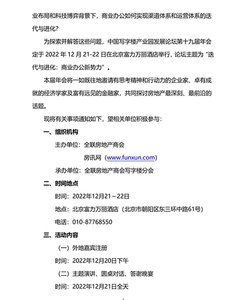 [提要]通知|關于召開“中國寫字樓產業園發展論壇第十九屆年會”的通知