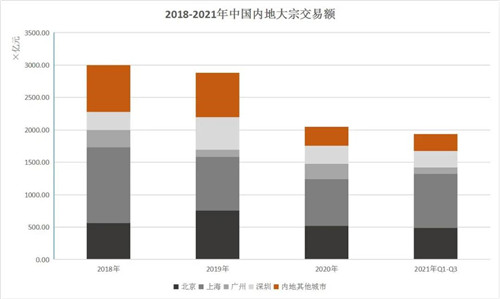 數據顯示,前三季度主要城市大宗交易市場累計成交162宗,錄得成交額約1900億元,已接近去年全年2000億元的成交額度,較2019年依舊有所不足,但已經表現出明顯的回暖態勢。