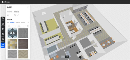 此次獲得中國地產金廈獎“2021年度智能公裝設計解決方案首選品牌”榮譽的inCreate自圖,是一款公裝設計智能提效解決方案。通過公裝大數據及AI算法,總結提煉公裝設計需求規律,為設計師提供更省時提效的便捷操作流程,以及專業級解決方案。此外,inCreate自圖還提供海量方案庫、素材庫、風格庫等創意選擇,致力于解決公裝設計行業長期存在效率問題。