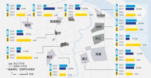 2022年第三季度上海產業園區市場受二季度封控的后續影響,部分企業通過延緩擴租或縮減辦公面積等措施控本增效。本季度錄得整體產業園區的凈吸納量有所下降、空置率略微抬升,但平均租金仍保持穩中微升,預期在需求回暖之前租金仍將繼續橫盤。高力國際對上海產業園區市場的走勢保持樂觀展望。